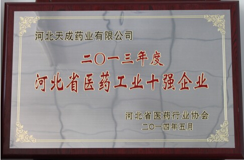 On the Second Council Meeting of Hebei Province Pharmaceutical Industry Association, Hebei Tiancheng Pharmaceutical Co., Ltd. was rated as TOP TEN ENTERPRISES IN THE HEBEI PROVINCE PHARMACEUTICAL INDUSTRY 2013.