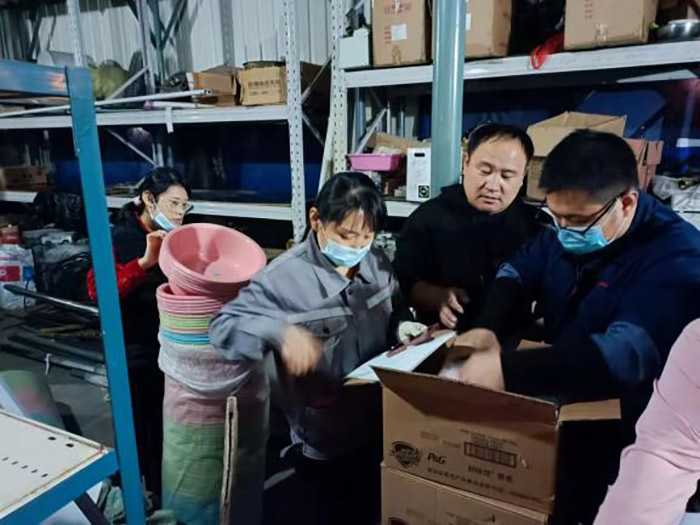 疫情突然來襲,公司第一時(shí)間啟動疫情防控應(yīng)急預(yù)案,生產(chǎn)調(diào)度部作為生產(chǎn)各類物料和生活基本物資存儲部門快速進(jìn)入備戰(zhàn)狀態(tài)。一面溝通生產(chǎn)車間和供應(yīng)部,確定庫存儲備量;一面統(tǒng)計(jì)各部門駐廠人員,有序?yàn)橛行枰娜藛T發(fā)放生活物資。根據(jù)實(shí)際情況,公司留下540名干部員工值守,保留了八成的產(chǎn)能,生產(chǎn)調(diào)度部部長蔣艷萍統(tǒng)籌安排本部門人員王文芳、龐瑞、唐玉曉、王娟和科員楊文月,準(zhǔn)確上報(bào)庫存數(shù)據(jù),協(xié)助各車間進(jìn)行生產(chǎn)安排,及時(shí)收、發(fā)物資,耐心為二、三廠區(qū)各車間、各部門值守人員發(fā)放了牙刷、牙膏、洗發(fā)膏、香皂、毛巾、洗臉盆、衛(wèi)生紙、口罩、墊子和被子等生活所需物資,做到賬目清楚準(zhǔn)確。為兩個(gè)廠區(qū)有序平穩(wěn)開展生產(chǎn)創(chuàng)造了可能。