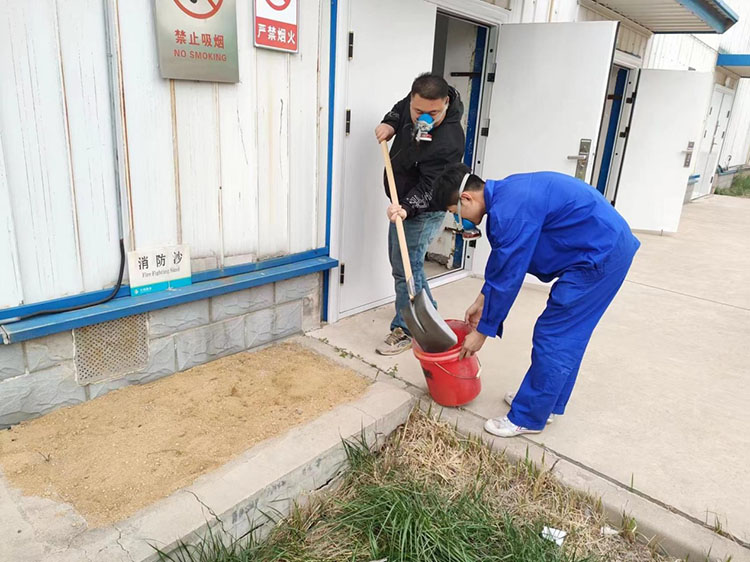 為了加強公司應(yīng)對突發(fā)事件的應(yīng)急處置工作,預(yù)防生產(chǎn)安全事故,保障職工生命和財產(chǎn)安全。著眼危險化學(xué)品安全事故風險管理,遏制危險化學(xué)品泄漏、火災(zāi)安全事故發(fā)生,安監(jiān)部、生產(chǎn)調(diào)度部、環(huán)保部于4月20日下午舉行了試劑庫三氯甲烷泄漏火災(zāi)應(yīng)急演練活動,公司安全副總劉建營做進一步指導(dǎo)。