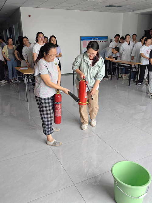 逃生演練結(jié)束后組織人員在貨梯門前空闊處進(jìn)行滅火演練及移動式消防器材的滅火演示,全體員工在專業(yè)人員的指導(dǎo)下進(jìn)行現(xiàn)場實(shí)地操作;安全員講解關(guān)于新址實(shí)驗(yàn)樓建筑消防設(shè)施、消防設(shè)備的性能特點(diǎn)及作用;使大家學(xué)習(xí)并了解新實(shí)驗(yàn)樓建筑的消防設(shè)施、消防設(shè)備及滅火器材的使用方法、注意事項(xiàng)。王俊峰院長就本次消防應(yīng)急逃生演練作總結(jié),并對今后的消防工作進(jìn)行安排部署。