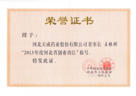 公司董事長、總經(jīng)理王振剛榮獲河北省“創(chuàng)業(yè)功臣”稱號