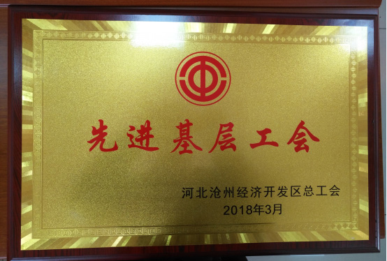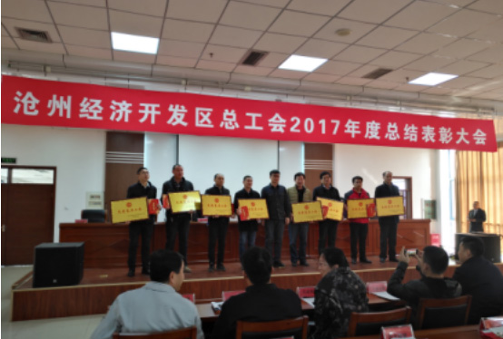 經(jīng)滄州經(jīng)濟(jì)開發(fā)區(qū)總工會綜合評比,研究決定,我公司工會委員會被授予“2017年度先進(jìn)基層工會組織”榮譽稱號。公司工會主席徐福河被授予“先進(jìn)基層工會主席”榮譽稱號,公司工會專員李艷萍被授予“先進(jìn)基層工會工作者”榮譽稱號。