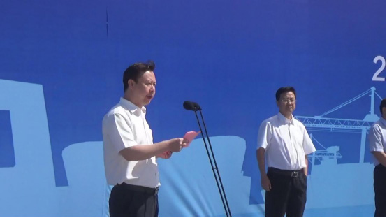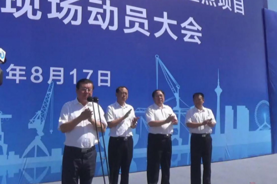 滄州市委常委,渤海新區(qū)黨工委書記、管委會主任張國棟宣布項(xiàng)目集中開竣工。