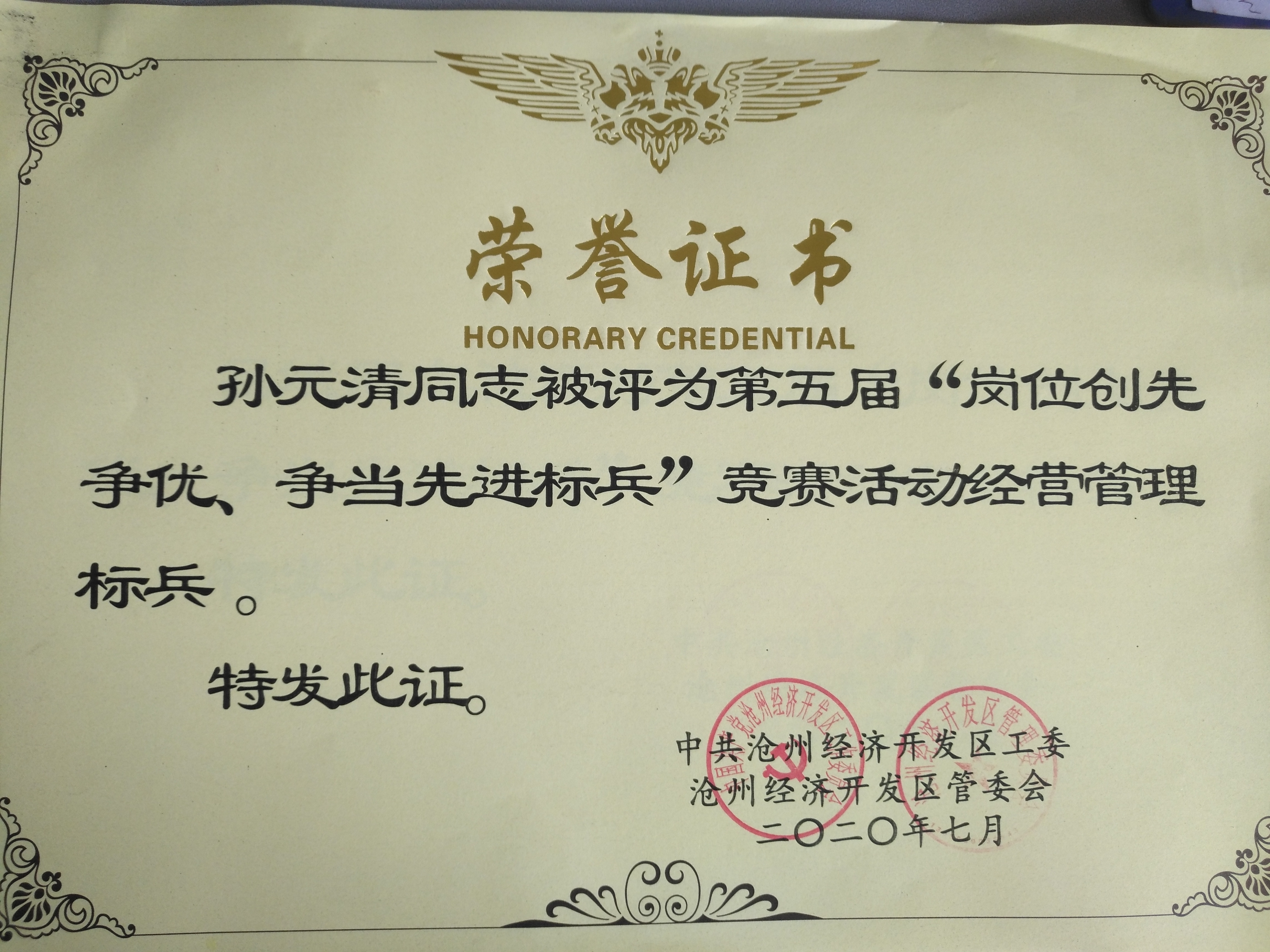 近日,滄州開發(fā)區(qū)企業(yè)委員會開展第五屆“崗位創(chuàng)先爭優(yōu)、爭當先進標兵”競賽活動,公司總經理孫元清被授予經營管理標兵、綜合部部長呂斌被授予安全標兵榮譽稱號、設備部部長劉植梅被授予技術創(chuàng)新標兵榮譽稱號、原料藥車間馬鵬舉、輸液二車間丁傳彥被授予生產標兵榮譽稱號。此次評選表彰工作圍繞提高管理水平、保證安全生產、增加經濟效益、促進技術進步,以創(chuàng)一流管理、創(chuàng)優(yōu)秀團隊、創(chuàng)最佳效益為目標,立足崗位創(chuàng)先爭優(yōu),開展爭當標兵競賽,引導全體黨員和全體員工以昂揚向上的精神風貌、更加出色的工作業(yè)績,體現黨組織戰(zhàn)斗力,展示黨員和先進員工風采,倡導塑造企業(yè)先進文化,帶領廣大群眾為企業(yè)和諧快速發(fā)展多做貢獻。