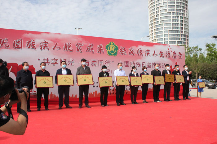 5月16日,在第三十一次“全國助殘日”到來之際,滄州市殘疾人聯(lián)合會(huì)協(xié)同新華區(qū)、運(yùn)河區(qū)、滄縣殘疾人聯(lián)合會(huì)共同舉辦了,以“鞏固殘疾人脫貧成果,提高殘疾人生活質(zhì)量”為主題的宣傳活動(dòng)。會(huì)上,河北天成藥業(yè)股份有限公司常務(wù)副總經(jīng)理王顥代表公司領(lǐng)取了,滄州市殘疾人聯(lián)合會(huì)授予的“十佳愛心助殘企業(yè)”榮譽(yù)稱號(hào)。