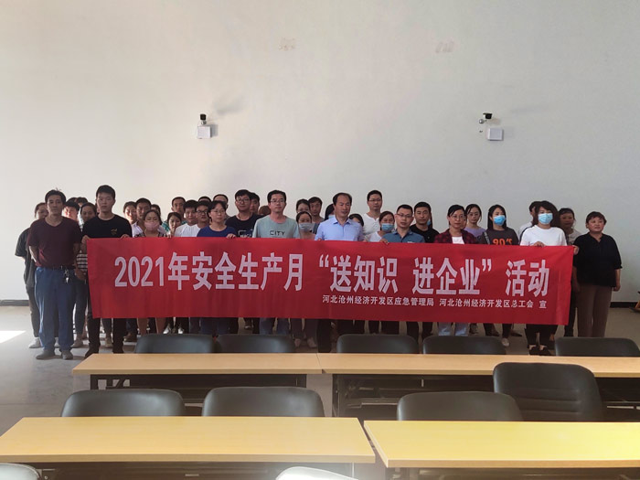 日前,滄州經(jīng)濟(jì)開發(fā)區(qū)應(yīng)急管理局聯(lián)合滄州經(jīng)濟(jì)開發(fā)區(qū)總工會(huì)啟動(dòng)了送“送知識(shí) 進(jìn)企業(yè)”活動(dòng)。6月17日上午,項(xiàng)目組來到公司三分廠培訓(xùn)室開展活動(dòng)。滄州經(jīng)濟(jì)開發(fā)區(qū)應(yīng)急管理局李延科長(zhǎng)、滄州經(jīng)濟(jì)開發(fā)區(qū)總工會(huì)工作人員賈起新出席活動(dòng),滄州渤海專修學(xué)院李振濤講師進(jìn)行授課。