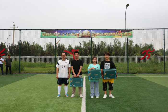 此次賽事項(xiàng)目設(shè)置了8人制賽、繞樁射門比賽和點(diǎn)球大戰(zhàn)。經(jīng)過小組賽和淘汰賽,我公司最終獲得繞樁射門比賽和點(diǎn)球大戰(zhàn)兩個(gè)技巧賽的冠軍,8人制賽項(xiàng)目季軍的成績(jī)。