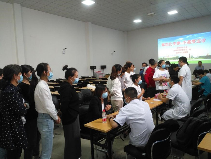 活動開始,滄州市總工會田瑩副科長發(fā)表講話,她指出,滄州市總工會通過建設(shè)“職工健康生活室”,聯(lián)合滄州市人民醫(yī)院定期下基層開展健康大課堂、義診等活動,為職工送去科學(xué)的營養(yǎng)保健指導(dǎo),對患病的職工提出相應(yīng)的治療建議,既滿足了職工健康的新需求,又使之成為了關(guān)心關(guān)愛職工健康的新舉措。她強(qiáng)調(diào)“常態(tài)化專家下基層巡診”活動將會持續(xù)搞下去,讓職工參與度更高,惠及更多的職工。